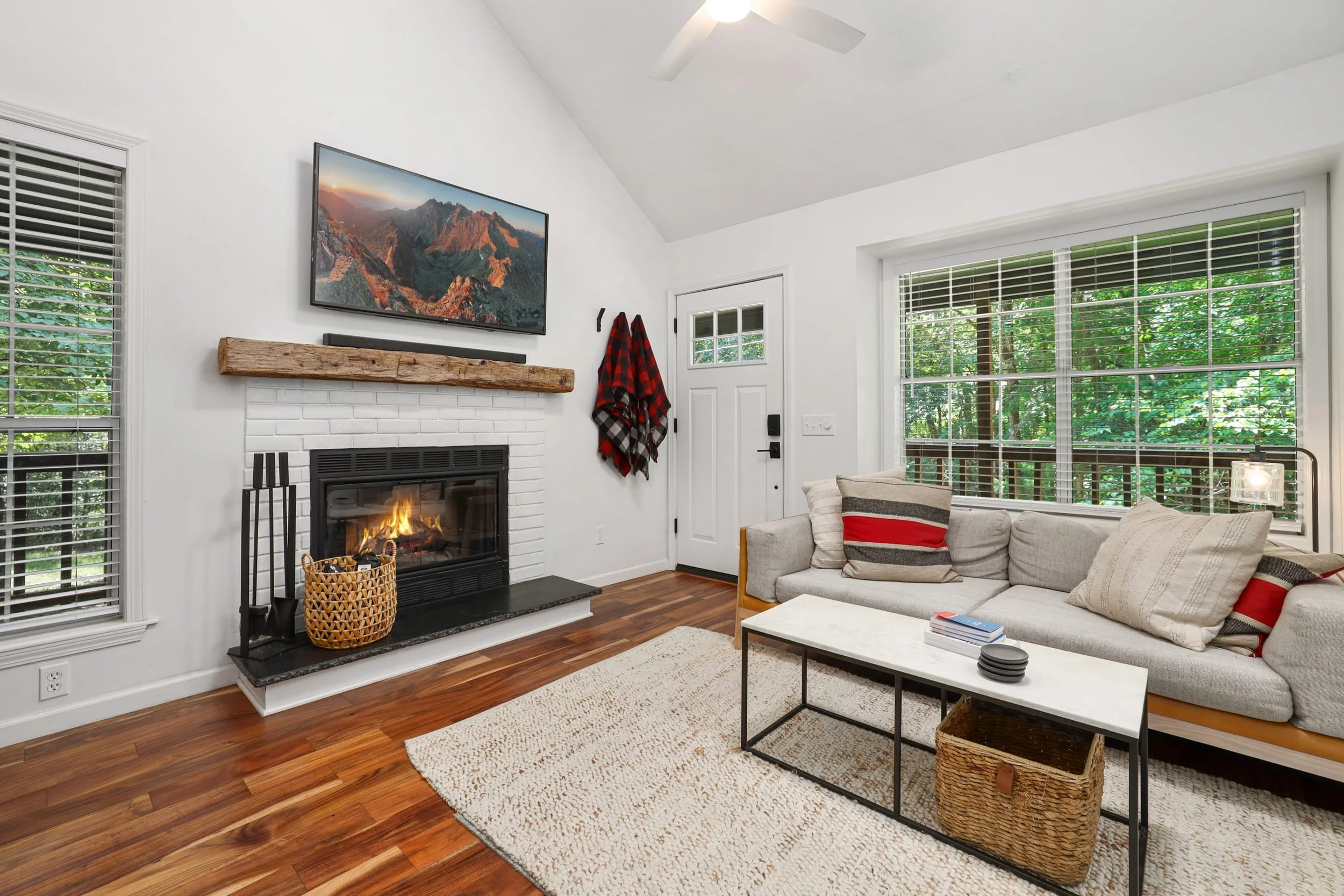 Make all your fall dreams come true by staying at Papa’s Place. This riverside cabin features a main house and guest house. It’s perfect for a large party as it sleeps up to ten! Enjoy your morning coffee on the porch as you rock in a rocking chair. Make memories with your loved ones or friends by toasting s’mores in the fire pit.