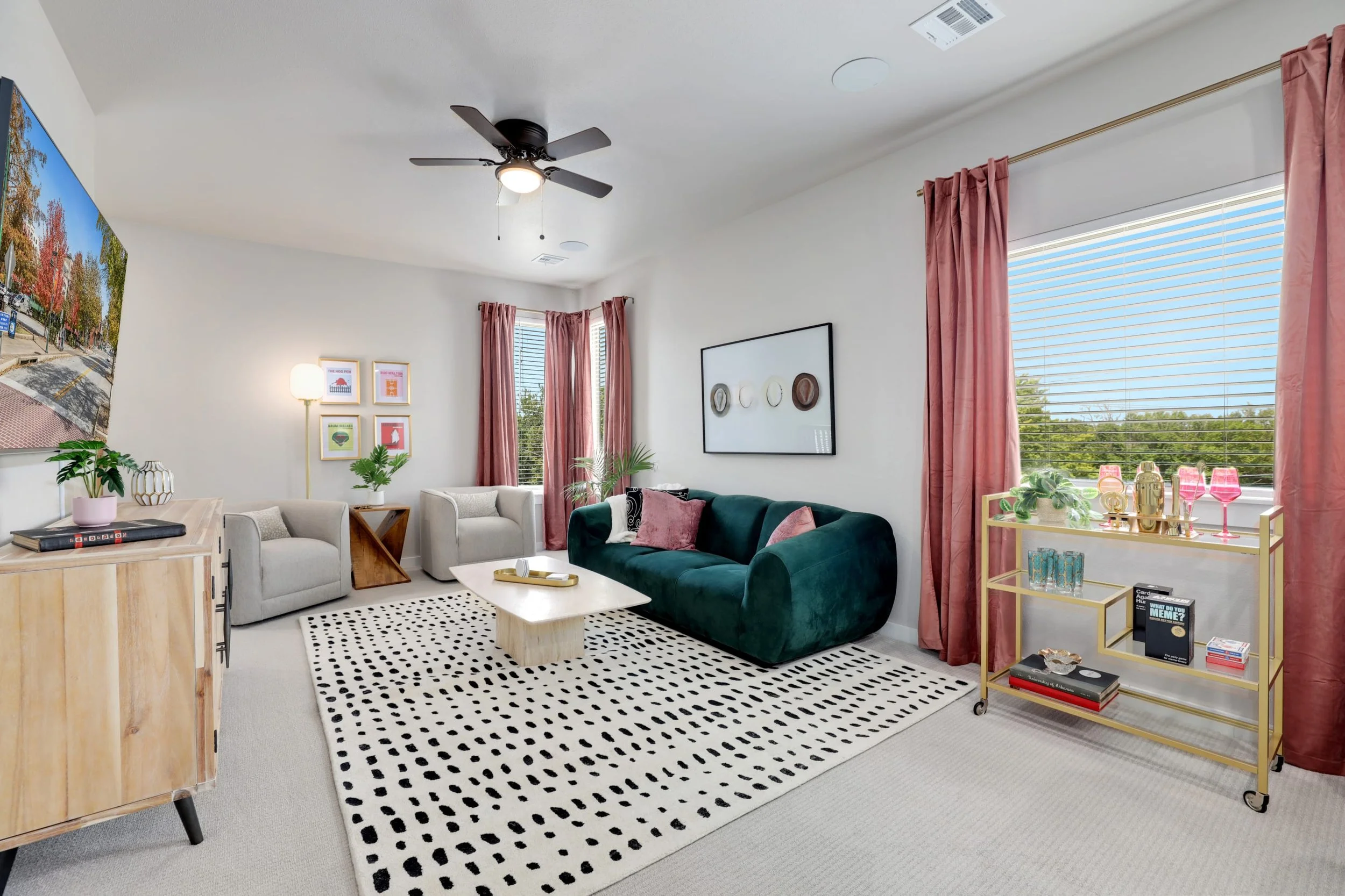 This fun and funky Fayetteville spot is perfect for your next girl’s trip! This colorful condo has Razorback decor throughout the entire place. Take pictures with your friends with the pink, dolly parton inspired bar cart or on the gorgeous green couch. Plenty of photo opportunities!